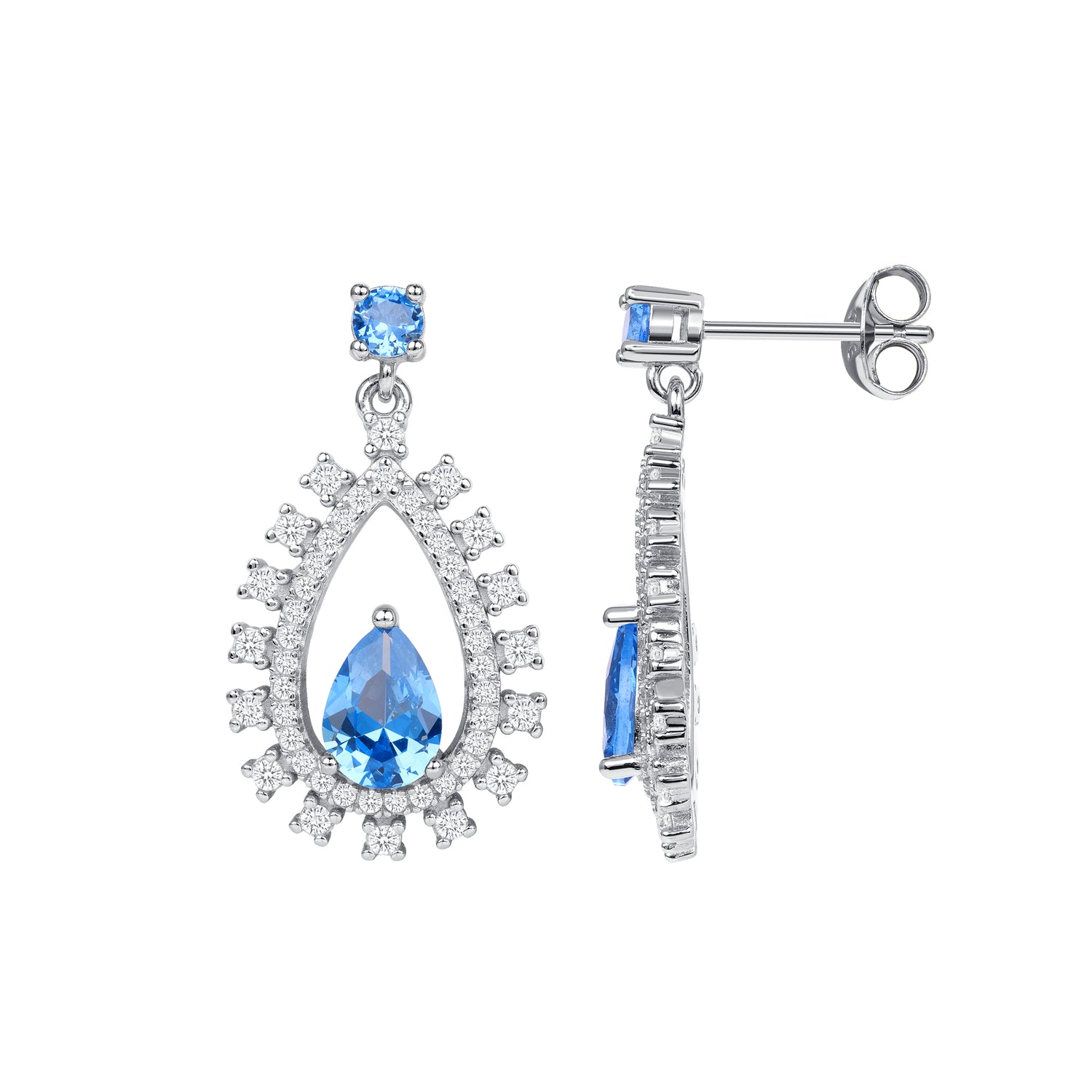 Silver 925 Rhodium Plated Clear Cubic Zirconia Teardrop Earring